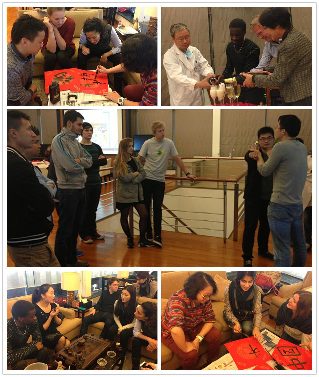 本期活动以“旅游达人和中国文化交流”为主题,15名留学生和20名医务工作者分享了自己最喜欢的旅游胜地,其中许多人推荐了自己的家乡,自豪之情溢于言表。随后,3名医生志愿者带领留学生分组观摩并体验了书法、茶艺和咏春拳。