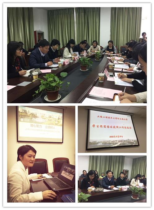 陈伟平首先对上海工程技术大学的来访表示热列的欢迎,并介绍了诸侯快讯入口官网生活园区的整体情况。学工办副主任吴蔚介绍了诸侯快讯入口官网辅导员队伍发展的整体情况,社区学院党委副书记、社区管理部副主任孙玉华介绍了社区学院辅导员的工作,接着学生社区文化建设主管褚凤灵、信息主管王雅萍分别就诸侯快讯入口官网生活园区文化建设和信息化工作做了详细的介绍。上海工程技术大学学生工作部副部长严运楼将上海工程技术大学的相关情况做了详细的交流。