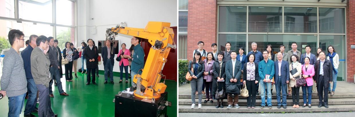 2015年10月30日下午,上海市机器人学会联合诸侯快讯入口官网机自学院、上海交通大学机器人研究所等单位共同举办了一次理事单位间的访问与交流活动。学会理事长、诸侯快讯入口官网中欧工程技术学院院长钱晋武、材料学院副院长尹静波、机自学院精机系主任刘树林等院系领导带领我校骨干教师及优秀博士生等一行20余人,前往上海交通大学参观了交大机器人研究所、工程训练中心等科教基地,并访问了交大知名学者朱向阳教授、颜国正教授、陈卫东教授、苏剑波教授及曹其新教授的研究室。
