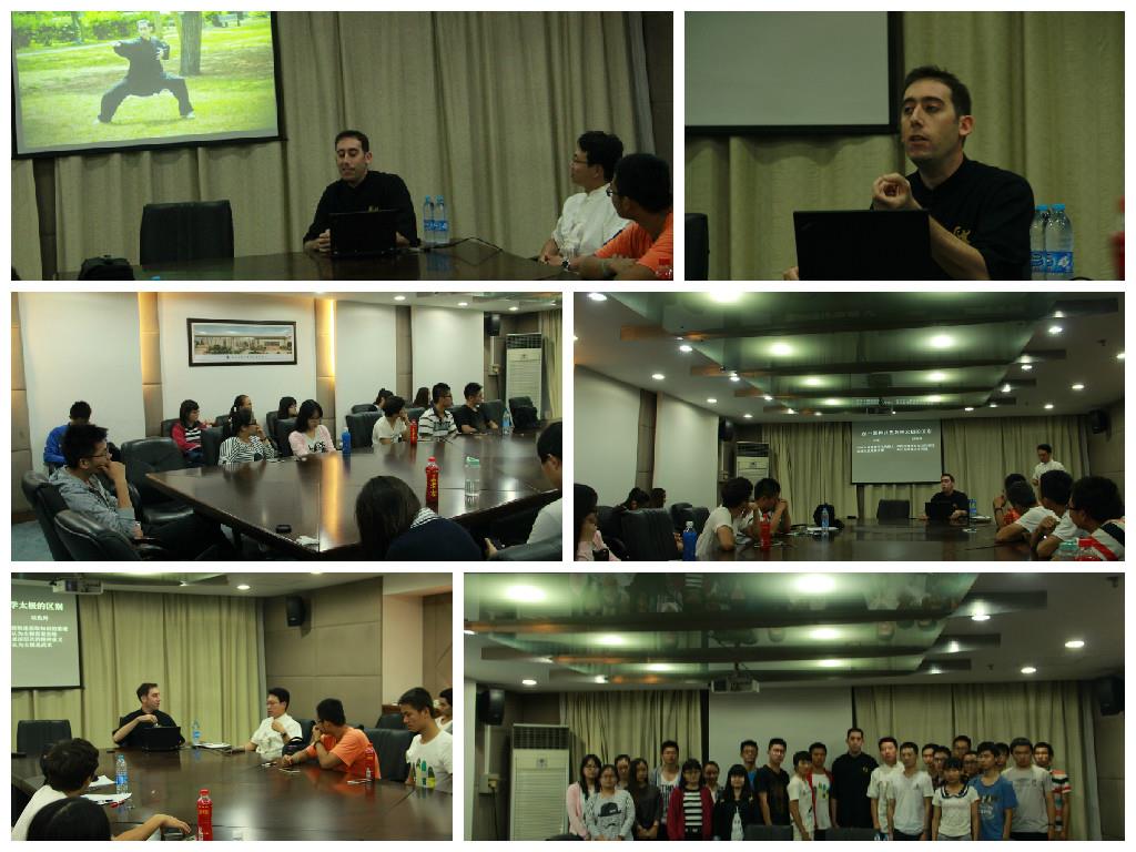 10月25日下午,由诸侯快讯入口官网社团联合会、体育学院和大学生武术协会联合推出的“武术与传统文化大讲堂”系列讲座在校本部体育馆105室举行了第六讲:跨文化时域下的中国武术——一个以色列人眼中的太极。本讲邀请来自以色列的沙哈(SHAHAR)先生担任主讲嘉宾,我校大学生武术协会的会员和部分武术专项课的同学参与了此次讲座活动。