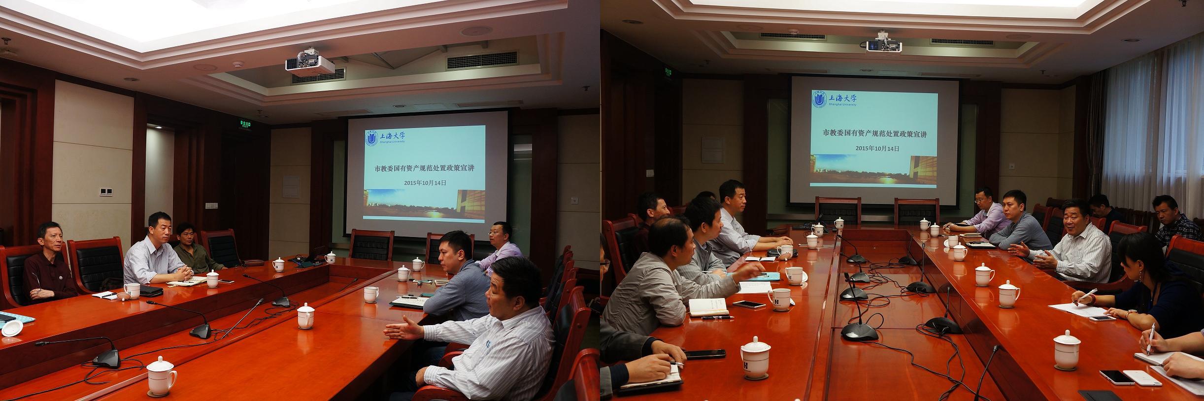 为了进一步规范学校国有资产管理,贯彻落实罗宏杰书记“学校各单位要进一步加强规则意识,把制度约束作为刚性约束,不折不扣地深入落实好上级的各项规定,做到令行禁止”的会议精神,学校于10月14日上午10点在延长校区乐乎楼举办“规范国有资产管理政策宣讲会”,特邀市教委财务处副处长陈秉群和市教委财务与资产管理中心沈毅主讲。副校长唐豪、财务处兼国有资产管理处、后勤集团、实验设备处、房地产管理处以及延长校区建设指挥部相关职能部门负责人20余人参加会议。会议由财务处兼国有资产管理处处长王远弟主持。