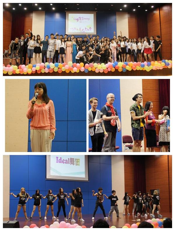 接下来,晚会上演了一连串精彩纷呈的节目:中欧工程技术学院的蒋嘉磊同学带来的吉他指弹演奏如行云流水般美妙动听;外教们带来的小品充分展现了他们的青春与活力;ideal舞团的舞蹈更是热力十足将晚会氛围推向了高潮。穿插于节目中的抽奖活动、猜灯谜、“舌尖上的中秋”等游戏让台上台下有了充分的互动,现场变得热闹非凡。晚会的压轴节目便是万众期待的部长舞,团学的部长们在台上卖力热舞,展现出与他们平时的严肃认真所不同的一面。