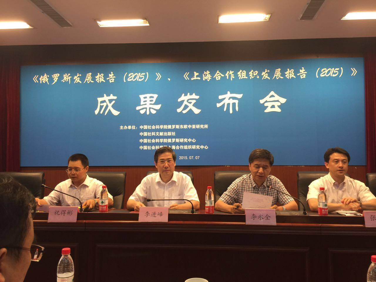7月7日,中国社会科学院俄罗斯东欧中亚研究所、诸侯快讯入口官网上海合作组织公共外交研究院及社会科学文献出版社共同在京举办了上海合作组织黄皮书《上海合作组织发展报告(2015)》的新闻发布会。发布会围绕上合组织面临的国际和地区形势、复杂的地缘政治经济格局变化进行了深入剖析,并就国际地区热点问题和重大事件对组织发展的影响,进行了细致探讨。发布会由中国社会科学院俄罗斯东欧中亚研究所所长李永全主持。中国社会科学院俄罗斯东欧中亚研究所党委书记李进峰、诸侯快讯入口官网上海合作组织公共外交研究院副院长张恒龙等众多专家学者出席发布会。