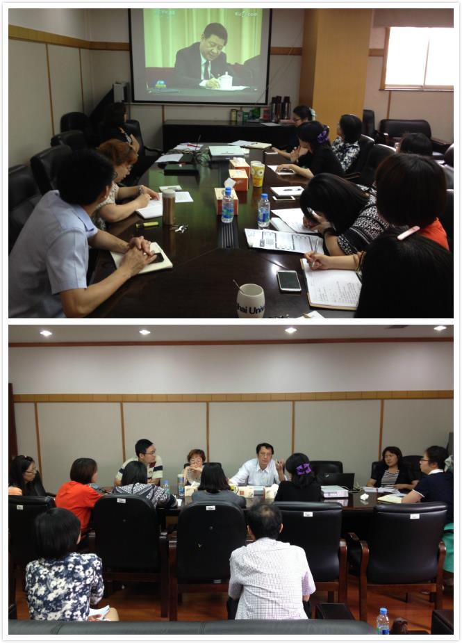 7月1日,正值中国共产党成立94周年之际,国际事务处在行政楼203会议室举行了“三严三实”专题组织生活会,学习和领会习近平主席的重要讲话精神,回顾和总结我党建党以来的光荣传统。支部领导班子成员和党员共13人参加了会议,会议由支部书记、副处长倪兰主持。