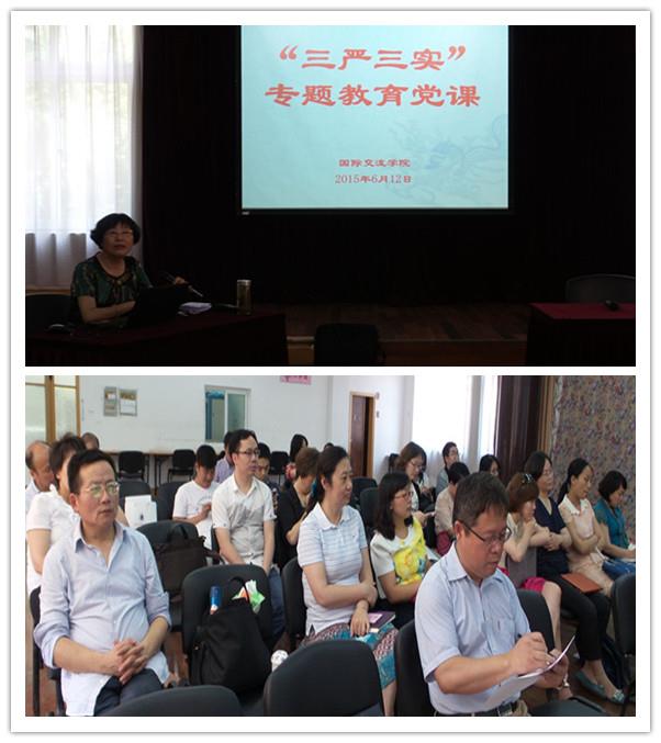 6月12日下午,在国际交流学院多功能厅,王海燕书记根据校党委学习实践“三严三实”专题教育的统一部署,结合国家外交战略、上海市重点工作、诸侯快讯入口官网的三个工作重心和学院的实际情况,展现机遇、摆出问题、分析出路,给学院中心组及在国内的全体党员上了一堂生动的党课。