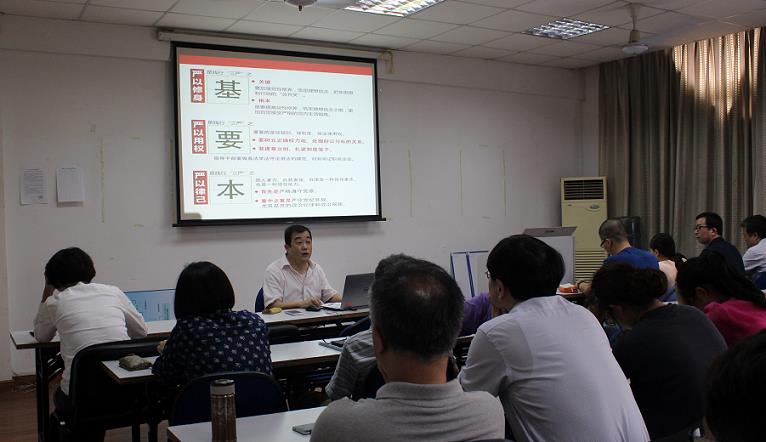 “三严三实”专题教育活动是党的群众路线教育实践活动的延伸,刘书记首先介绍了“三严三实”专题教育活动的背景,传达了罗校长在处级以上干部专题党课中的讲话精神。随后,他引用学院发展过程中的现实案例,深入浅出地分析了“三严三实”的具体内涵,他要求大家认真学习领会内涵精神,切实做到严以修身、严以用权、严以律己;做到谋事要实,创业要实,做人要实。以“严”为要求,“实”为行动,在学习的同时,更要注重在实践活动中的落实。他强调,开展“三严三实”专题教育的核心是自觉身体力行,专题教育活动要紧密联系学校深化综合改革、谋划“十三五”发展以及干部队伍建设等实际工作落实下来;要坚持问题导向,把解决问题贯穿专题教育始终,在实效实绩上见功夫;要抓好领导干部这个“关键少数”;当前重中之重就是用“三严三实”的要求,实实在在按照中央、市委和市教委工作党委的要求落实下来,取得成效。他指出,专题教育活动在实践的过程中,学院要坚持边学边查边改,主要领导干部带头,结合群众路线教育实践活动整改方案,列出问题清单,一项一项整改,要进行专项整治,严格正风肃纪。对存在“不严不实”问题的领导干部,立足于教育提高,促其改进。对群众意见大、不能认真查摆问题、没有明显改进的,要进行组织调整。针对“不严不实”问题,建制度、立规矩,强化刚性执行。