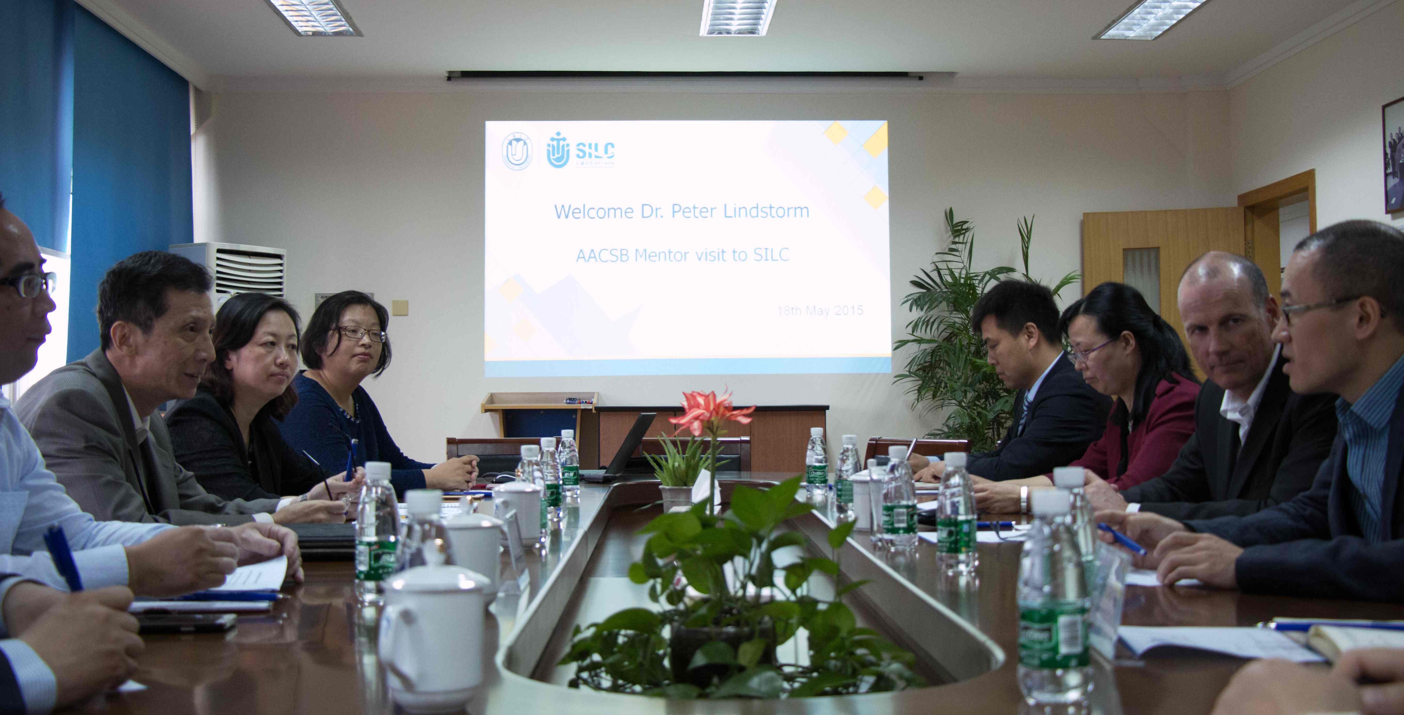 AACSB的商学认证程序包括获得成员资格、认证资质申请获得通过、正式认证和保持认证资格等四个阶段。2013年1月,学院获得AACSB成员资格。2014年11月,学院向AACSB国际商学院认证组织递交的认证资质申请报告EA(Eligilibility Application)获得通过,至此,学院已经完成认证程序的前两个阶段,进入获取正式认证资格的第三阶段。AACSB委派来自瑞士圣加伦大学(University of St. Gallen) 的.Peter Lindstorm博士作为学院的导师(Mentor)。此次是Lindstorm博士首次来沪现场考察并指导学院认证工作。