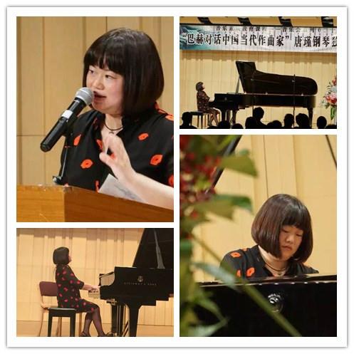 本场音乐会的主讲人和钢琴家是来自上海音乐学院附中的旅欧钢琴家唐瑾老师。音乐会初始她为我们介绍了这场音乐会的曲目编排,以及伟大的巴洛克时期作曲家巴赫。唐老师表示,这是她第一次以巴赫作品和中国当代作曲家的作品交叉编排的方式安排音乐会的曲目,她希望借此来表达中西音乐的文化交融和音乐上的交流对话。之后唐老师分组为大家讲解和演奏了本场音乐会的五组曲目。首先她为大家演奏了相对活泼欢快的《阿勒曼德》、《夕阳箫鼓》、《库朗特》和《小奏鸣曲》。其间,她对同学们说,《小奏鸣曲》的作曲家杨立青是她的恩师,她只要是开中国作品的音乐会,都会选择演奏杨老师的作品作为怀念。之后她又为观众带来了相对柔美抒情的《萨拉班德》、《京剧瞬间》。演奏完这三组曲目后,唐老师对同学们说,在观众听完一系列的大作品结束之后,通常会安排一些欢快活泼的小曲子演奏,法国组曲也是这样编排的。于是接下来,唐老师演奏了《歌调》、《小步舞曲》 和谭盾的《八幅水彩画的回忆》的选段几首作品。最后,唐老师以两首结构复杂的大作品《基格》和《情景》结束了这场音乐会。