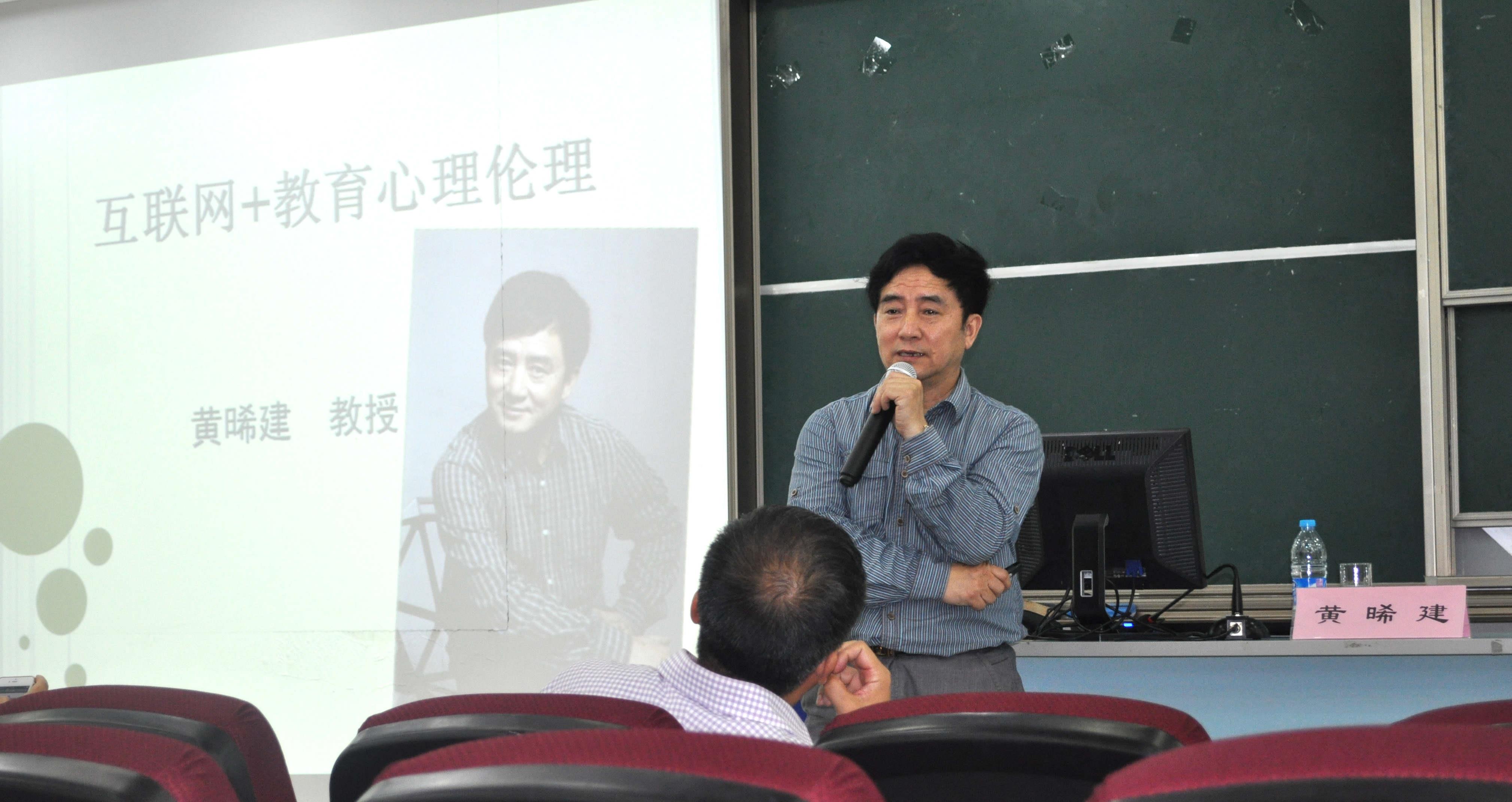 黄教授的报告风趣幽默,他通过形象生动的案例、社会焦点热点案例,深入浅出的分析了在当下互联网大环境中,高校育人任重而道远的现状和亟待转变的教育观念和方式。他围绕几个问题展开论述:面对复杂的互联网时代,“你准备好了吗?”、“你了解互联网吗”、“你了解教育对象吗”、“你了解你的团队吗”、“你了解自己吗”,从心理学的角度剖析教育者、教育环境、教育对象等在互联网时代的特征和变化,从而指导我们教师如何应对这些变化,如何顺应变化改变自己的心理状态和教育思路。
