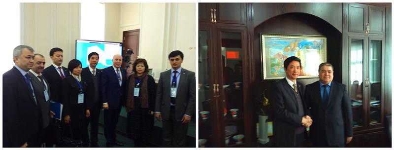 27日,代表团访问塔什干国立信息技术大学,该大学是中亚地区唯一一所培养高层次信息和通讯技术人才的高校,中国华为技术公司塔什干子公司与该大学在“The Telecom Seed for the Future”规划框架下签署过合作协议。乌信息通讯部副部长、Мухитдинов Хаким校长,Синдаров Шерзон第一副校长和Хакимов Зафор副校长接见了代表团一行,双方就未来合作方向交换了意见。随后李伟和张丹华在电子通讯系为大学生发表“传承丝路文化 共铸美好未来”的主题演讲,演讲内容引起学生强烈共鸣、赢得学生热烈掌声。随后,访问塔什干国立经济大学,该大学与诸侯快讯入口官网于2013年5月共建成立乌兹别克斯坦研究与教育交流中心并签署合作协议。代表团与校长Макхмудзен волтаваев、外事处主任古·卡里耶娃和副主任乌斯曼商讨了教师交流和互换学生的计划。