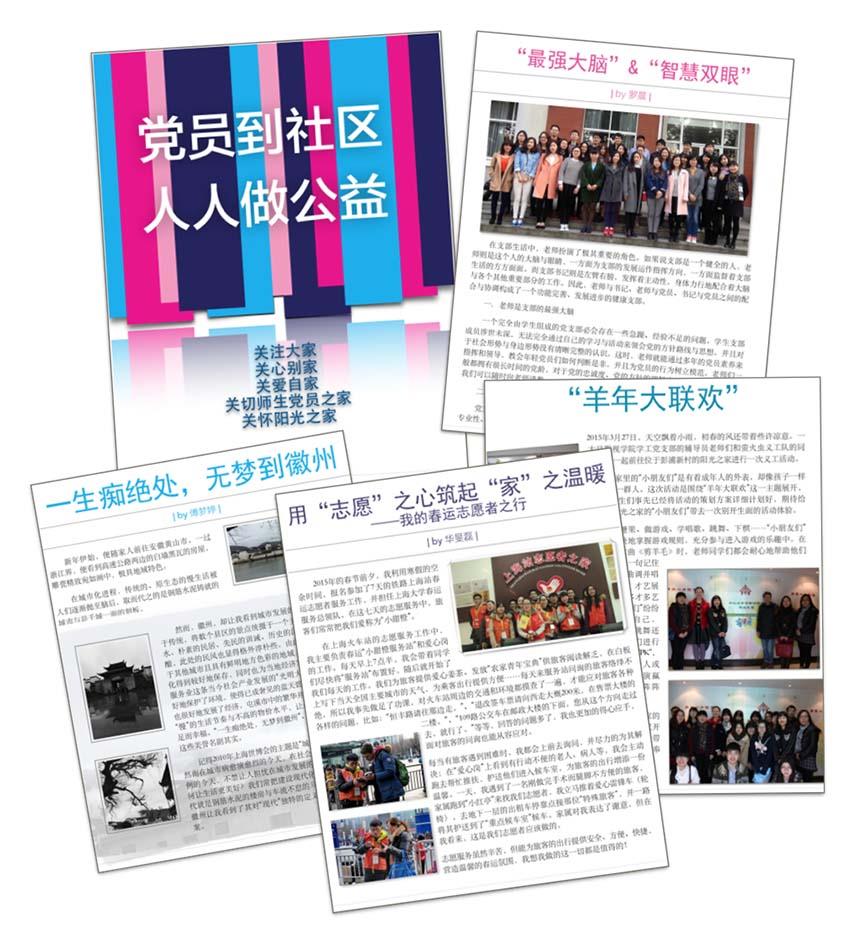 影视学院学工党支部寒假期间“党员到社区、人人做公益”活动共收集了300余张照片,精选了其中的180张照片,并配发了62篇短文,结集为画册。教师及学生党员的积极参与,提升了自身对国家、社会、家乡、社区、家庭的认知与理解。各类公益活动的开展锻炼了师生能力,提升了师生党性素养,充分践行了基层服务型党组织示范点的职能和目标。