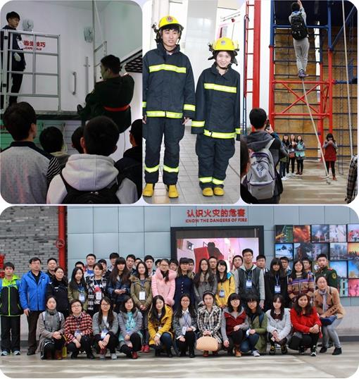 在消防实践板块,嘉定区消防中队的消防员带领学员们参观了嘉定区消防科普体验馆,这是全市首家互动消防体验馆。馆区内主要分为消防趣味体验区与火场逃生体验区两个部分。在消防趣味体验区内,消防员通过高科技模拟,向同学们讲解了家庭防火常识、家庭火灾隐患排除方法、紧急情况下如何播报火警、灭火器的种类及使用方法等知识。同时配以展馆内图文并茂的展示、形象生动的3D动画甚至还有与消防灭火相关的游戏设施,使同学们在寓教于乐中学习知识,增加了学习的积极性与乐趣。在火场逃生体验区中,消防员先介绍了高层逃生技巧并展示了相关逃生器材,并进行了演示。随后消防员邀请两名同学进行尝试,在他们帮助与指导下两人均挑战成功。最后大家在模拟的火焰与浓烟中,运用先前所学知识成功完成了火场紧急逃生。
