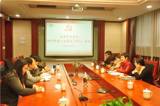 3月27日下午,直属单位党委在延长校区乐乎楼会议室召开2015年第二次党委(扩大)会议,讨论布置近期工作。会议由直属单位党委书记陆翠兰主持,直属单位党委委员及所属单位负责同志参加了会议。