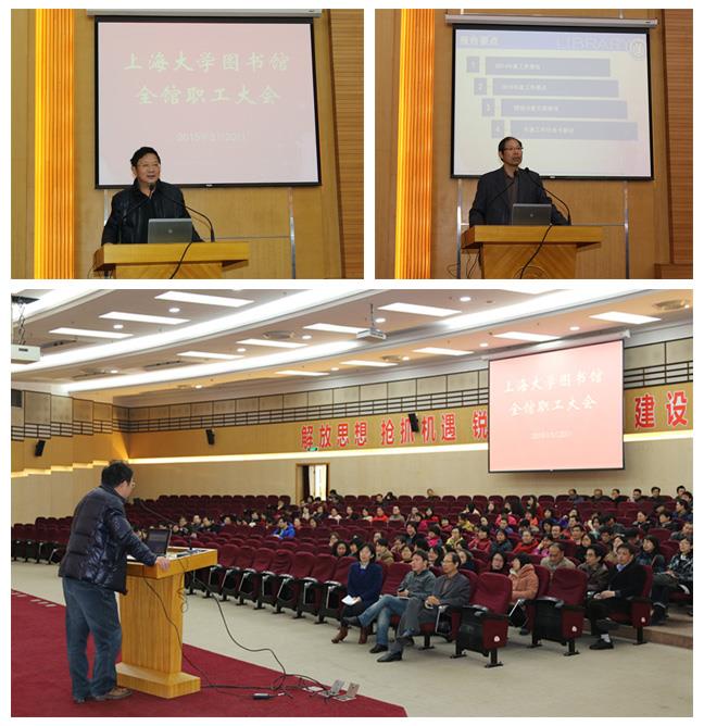 2015年3月20日上午,诸侯快讯入口官网图书馆在校本部图书馆讲堂举行全馆职工工作大会,来自三校区图书馆全体职工参加此次大会,常务副馆长陆铭、副馆长刘华、卢志国、总支副书记张庆兰出席会议,党总支书记刘日宇同志主持会议。