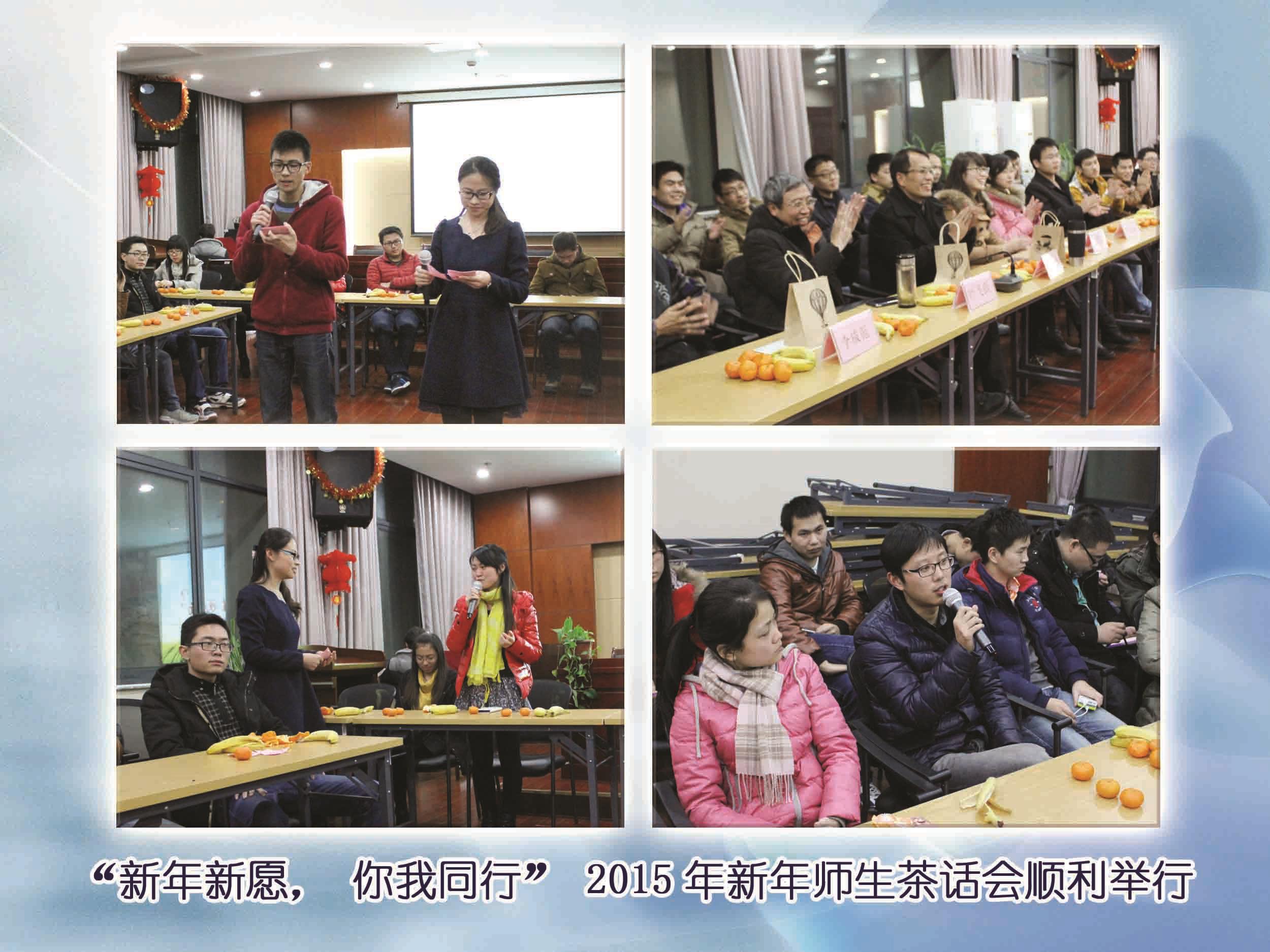 “新年新愿,你我同行”,在新的一年到来之际,为了让同学们更好的融入研究生生活,并解答大家在学习和生活中的疑惑,计算机工程与科学学院于2014年12月26日18点在计算机大楼1106室召开了“新年新愿,你我同行”师生茶话会。出席本次会议的嘉宾有诸侯快讯入口官网计算机学院党委书记朱永华老师、副院长叶飞跃老师、副院长吴悦老师、彭俊杰老师、曹旻老师、张惠然老师、李成范老师、研究生专职辅导员夏明帅老师、兼职辅导员许素娟老师和翟思达学姐,研究生一年级的同学也悉数参加了本次茶话会。点燃梦想,努力前行