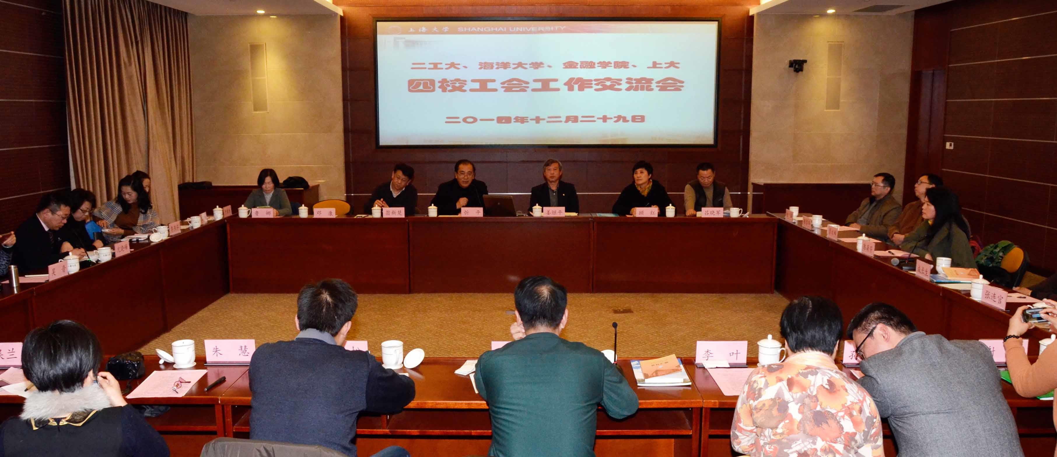 校工会常务副主席姜继平同志首先通过PPT的形式形象生动地介绍了我校工会的概况、特色工作以及二级教代会的工作做法及体会。上海第二工业大学工会常务副主席沈晓峰同志、上海海洋大学工会常务副主席成长生同志以及上海金融学院工会常务副主席周剑平同志也分别介绍了各自学校工会的概况以及特色工作。