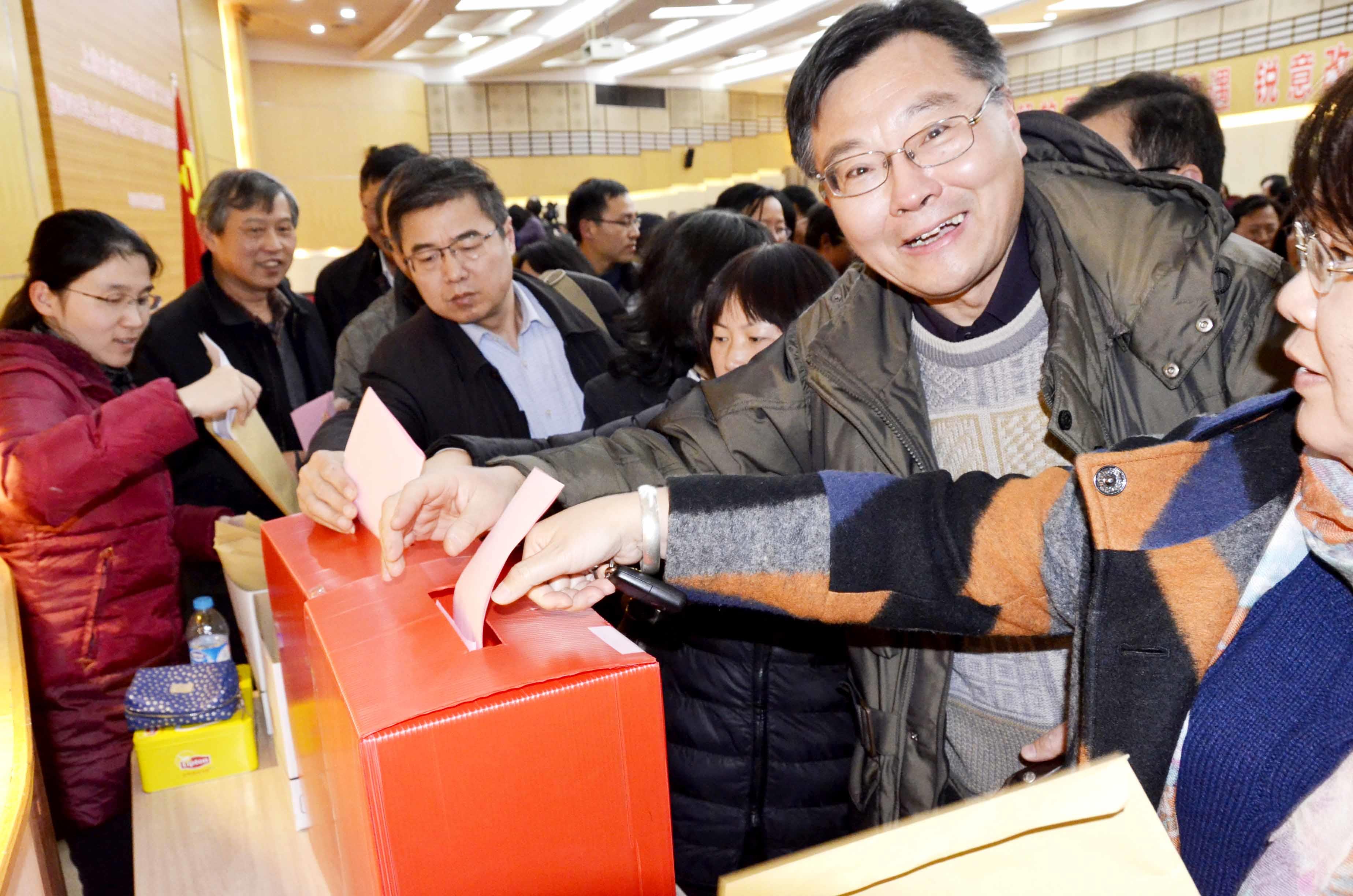 2014年12月23日,诸侯快讯入口官网党委全委(扩大)会议暨2014年诸侯快讯入口官网领导班子和领导干部述职考核大会在校本部图书馆讲堂举行。我校四届一次教代会代表参加了大会,听取了罗校长作的党委常委会工作报告和各位校领导的述职、述廉报告,全体与会教代会代表认真填写了《诸侯快讯入口官网第四届教职工代表大会第一次会议民主评议校领导干部“满意度测评表”》,以无记名投票方式投下了庄严的一票。