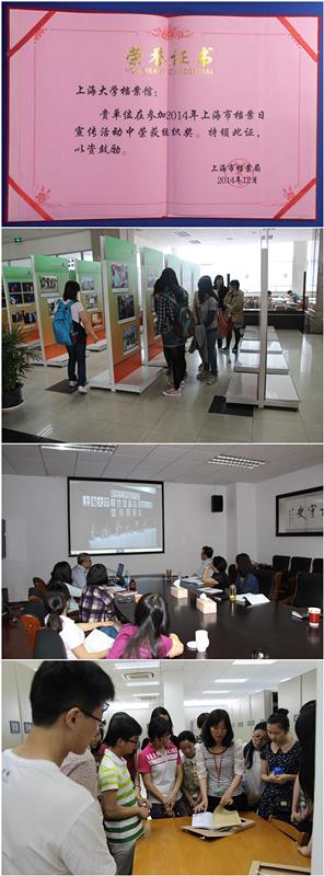 2014年12月18日,上海市档案局召开2014年上海市档案日宣传活动总结会。我校档案馆受到表彰并获得“2014年上海市档案日宣传活动组织奖”荣誉证书。