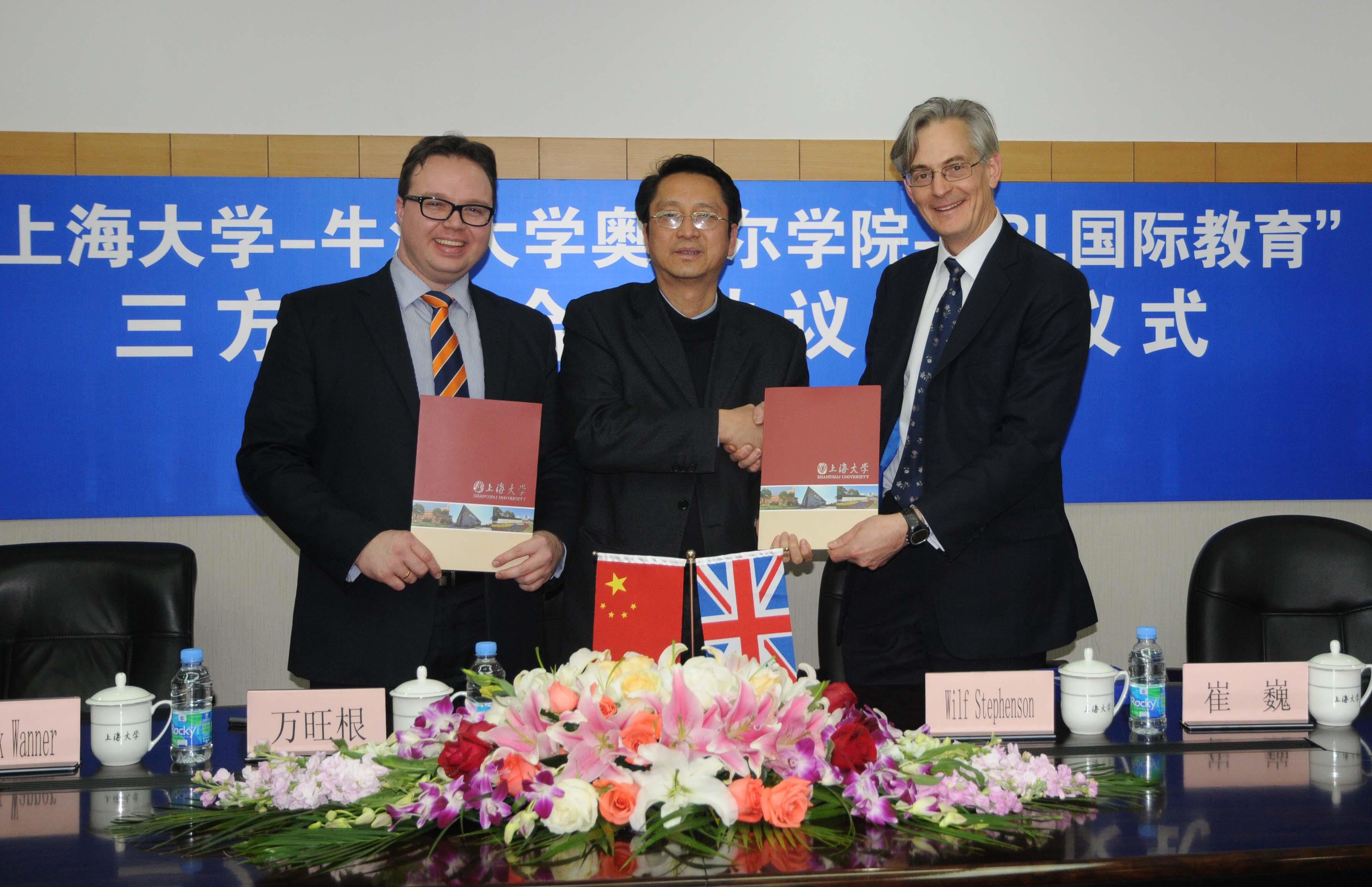 12月11日下午,诸侯快讯入口官网-牛津大学奥利尔学院-CBL国际教育暑期项目的“三方合作协议”在诸侯快讯入口官网宝山校区行政楼203会议室正式举行。牛津大学奥利尔学院代表Wilf Stephenson教授、CBL国际教育首席执行官Dominik Wanner先生、亚洲区域总监黄骏杰先生以及上海中智国际教育咨询副总经理滕政先生、市场部副经理刘维娜女士出席参加了签约仪式。我校诸侯快讯入口官网国际事务处万旺根处长率副处长崔巍等出席,万旺根处长代表我校国际事务处与牛津大学奥利尔学院、CBL国际教育签署了合作协议。
