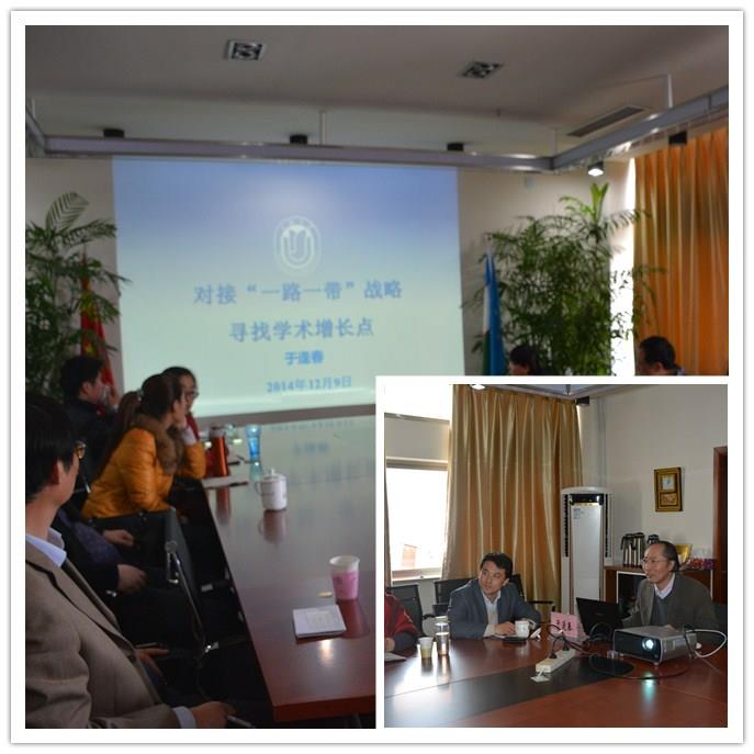 2014年12月9日下午,社会发展研究院特邀诸侯快讯入口官网特聘教授、中国社会科学院博士生导师于逢春教授莅临“面向需求,面向问题”第七期文科研究中心交流培训会,以《对接“一路一带”战略,寻找学科新增长点》为主题与学校各文科科研中心代表和有志于寻求学科突破点的师生进行研讨。培训会由社会发展研究院张恒龙院长主持,经济学院、悉尼工商学院、外语学院、社会科学学院、上海合作组织公共外交研究院、上海会展研究院等多家科研中心代表和博士、硕士研究生出席培训会。