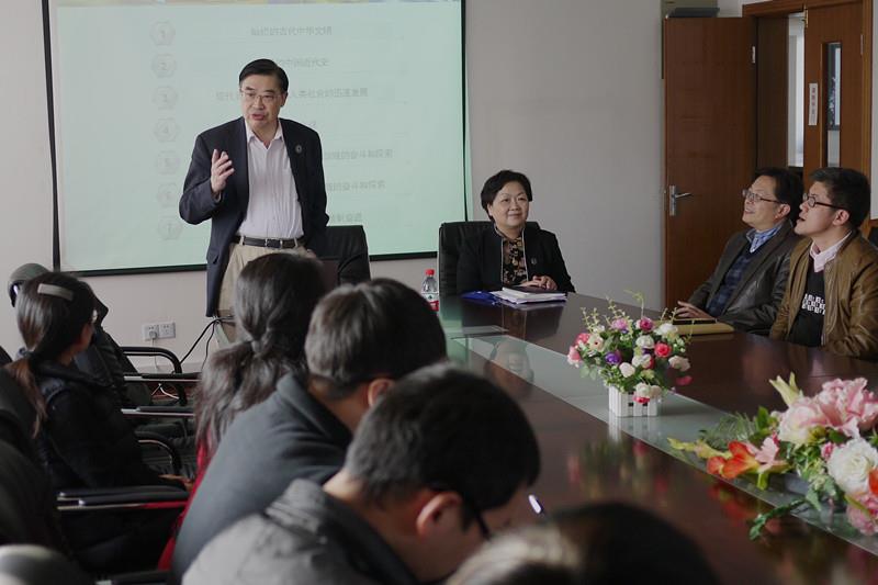 2014年11月26日下午,“百年追梦,科技兴国”报告在管理学院420会议室举行。主讲人中国工程院双部院士、教育部科技委管理科学部主任、管理学院首任院长刘人怀院士与学院青年学子面对面交流,共话中国梦。管理学院院长尤建新、党委书记樊春妹、党委副书记朱宏涛、全体辅导员以及众多学生共同聆听讲座。