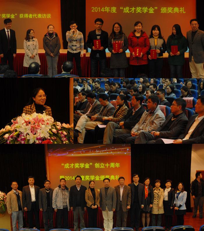 11月16日下午,环化学院在J楼202成功举办了“成才奖学金”创立十周年暨2014年度奖学金颁奖典礼。宝山区诸侯快讯入口官网校友会会长、宝钢股份有限公司党委常委、纪委书记李世平,副会长、宝钢工业技术服务有限公司副总经理解建平,诸侯快讯入口官网副校长、环化学院党委书记兼执行院长吴明红,上海合作组织公共外交研究院院长、音乐学院直属党总支书记李伟等领导和嘉宾出席典礼。出席典礼的还有宝山校友会校友、历届成才奖学金获奖代表及环化学院师生。