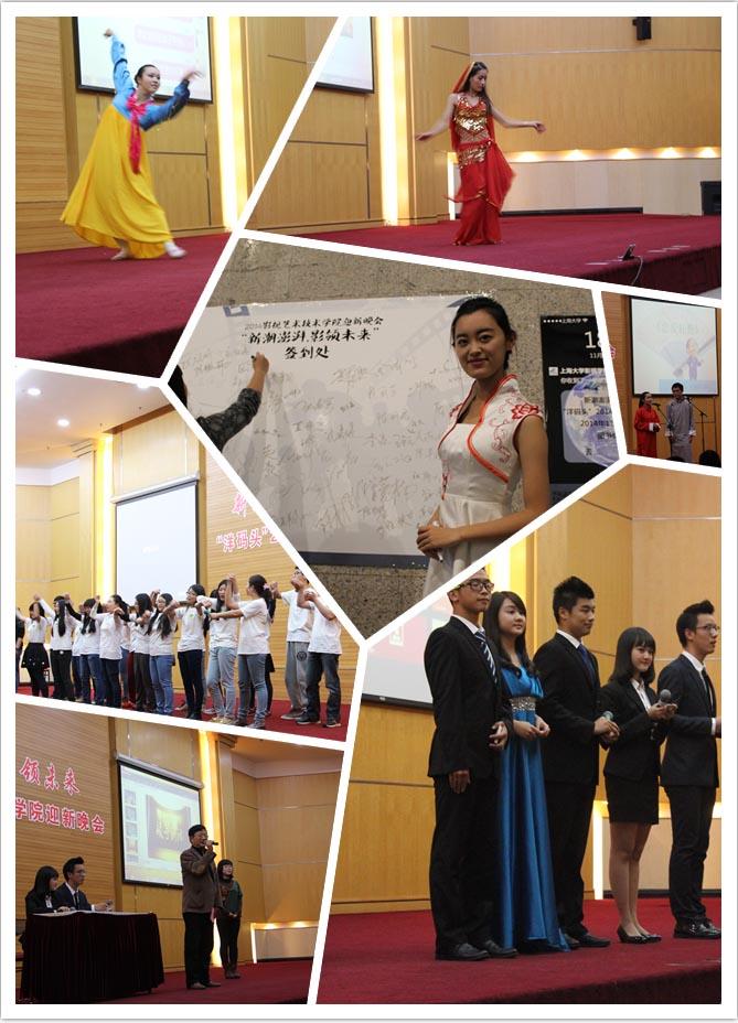 新潮澎湃,影领未来—“洋码头”2014影视学院迎新晚会在一片欢声笑语中落下了帷幕。伴随着11、12级影视学院“我们又老了”的感叹,13、14级的小鲜肉们已经迈开矫健的步子迎接进入专业学院带给他们的各种机遇挑战。秋季学期刚过,上大传统的“三周养老院,七周疯人院”似乎不太适用于描述影视学院的同学们,不过此刻,无挂碍故欢聚于此,无论新老战友,总该有个喜庆的交接。“迎新”便意在于此。在上大新闻联播开场下,整场晚会步入正题。