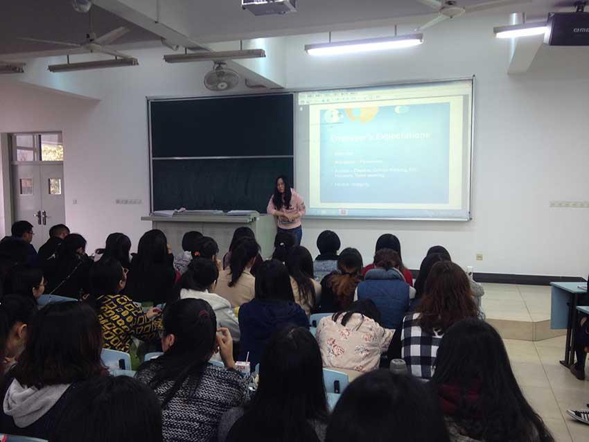 最后,成彦女士向同学们强调了工作忠诚度的问题。“公司刚开始雇佣你,其实培养你的成分更多一些,一个大学毕业生并不能为公司带来太多的收益,因此刚开始工作时,大家更要看重职业发展与职业潜力,不要过分看重工资而让自己工作的非常不开心。”