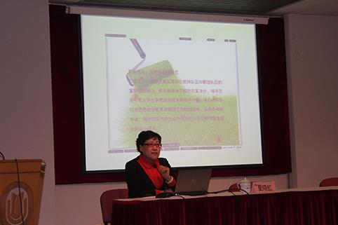 2014年是思想教育学科建设30周年,也是16号文件颁布十周年,学生德育工作面临跨越式发展的机遇与挑战。德育工作队伍建设越来越为国家重视。2014年3月,教育部颁布了《高等学校辅导员职业能力标准(暂行)》,以此构建高校辅导员队伍能力标准体系,进一步加强高校辅导员队伍建设,推动高校辅导员队伍专业化、职业化发展,提升大学生思想政治教育工作质量。为了更好地推进我校辅导员队伍职业化、专业化建设,提升德育工作的实效,为人才培养中心工作服务,学生工作办公室借助举办上海高校辅导员思政研究能力提升专题培训之机,邀请全国高校辅导员工作研究会夏晓虹老师结合能力标准与能力大赛,解析新时期辅导员的职业发展路径。