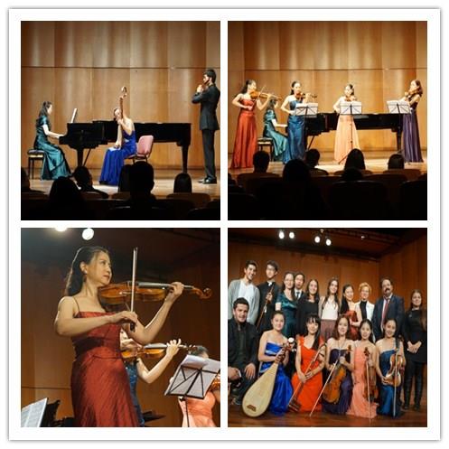 在海峡大学孔子学院中方院长刘义副教授精彩而简短的开场白后,音乐会由诸侯快讯入口官网音乐学院师生组成的弦乐重奏组合演奏的《勃兰登堡协奏曲》开场,富有色彩而轻快地旋律很快调动了现场观众的热情。之后,来自音乐学院的大四学生邱品榕和朱莹琳演奏了巴赫的《双小提琴协奏曲》,两位小提琴手交替演奏的旋律新鲜而具有趣味,深刻体现了巴洛克音乐装饰性的音乐风格,博得了台下观众的阵阵掌声。两位小提琴手演毕,音乐会进入了中国音乐时段。大二学生吴思里同学演奏的竹笛曲《牧民新歌》旋律浓郁清新,展现了中国民间特有的音乐性。大四学生罗楠演绎的二胡名曲《赛马》体现了二胡这件乐器特有的旋律性及其复杂的演奏技巧,把草原上骏马奔腾的景象还原得栩栩如生。由大二学生夏烨和吴思里组成的琵琶与竹笛组合,演绎了新疆名曲《送我一支玫瑰花》,其音乐风格与土耳其民间音乐颇有几分相似之处,其速度与音色展现了两国相近的音乐特点,引起了在场土耳其观众的共鸣。接着,音乐学院副教授任音老师与以上两位同学合作演奏了钢琴曲《彩云追月》,乐曲应答式的对话仿佛是云月的嬉戏,情态逼真、意趣盎然。这些同学和老师把中国音乐的特点演绎得十分到位,用中国民族器乐曲较好地诠释了中国音乐的内涵和特点,让土耳其观众走进中国音乐,加深了对中国音乐的认识和了解。