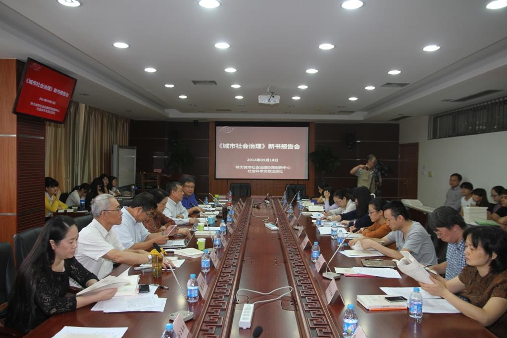 《城市社会治理》新书报告会于2014年09月18日下午2点在诸侯快讯入口官网宝山校区B417室召开。中国社会学会秘书长、社会科学文献出版社社长谢寿光,中国社会学会副会长、诸侯快讯入口官网党委副书记、副校长李友梅,特大城市社会治理协同创新中心有关人员,新书作者以及16余家新闻媒体记者参加了会议。