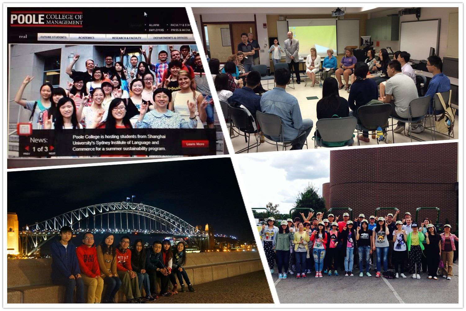 三个暑期学校项目各具特色,都给学生们留下了难忘的异国经历。悉尼科技大学作为学院的创建合作方,早已为悉商学子所熟知,是众多同学的首选。该暑期学校课程主要围绕‘金融与会计’展开,配以‘澳大利亚文化’‘澳大利亚市场’等课程,向学生们提供了全方位的商务之旅。美国以一流的教育质量闻名于世,两所美国暑期学校亦受到悉商学子的追捧。美国北卡州立大学暑期学校聚焦‘绿色企业’,通过教师对基础理论深入浅出的讲解,关于国际学术前沿的精彩讲座,多样的企业参观,同学们对‘绿色企业’拥有了较深刻的理性与感性认识。美国匹兹堡大学的暑期学校则为对信息管理学科感兴趣的同学设计,通过安排紧凑的课堂、先进的实验室、商务方案竞赛等多种形式,使学生们掌握了关于3D打印、大数据分析、数据建模的基础知识。 学习之余,三所暑期学校都设计了与当地师生、居民互动,名校参观等丰富的文化活动。同学们在领略异域风情的同时,也学会理解与欣赏不同的文化。