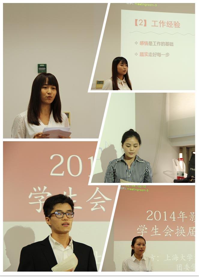 2014年9月12日下午三点整在诸侯快讯入口官网宝山校区a楼北区4003会议室举行了诸侯快讯入口官网影视学院学生会2014-2015届主席团换届大会。出席本次活动的有影视学院团委书记严瑶老师,各班班长、团支书,原影院学生会主席团成员,二十多名学生会骨干以及八名经前期推选参与主席团竞选的候选人组成。