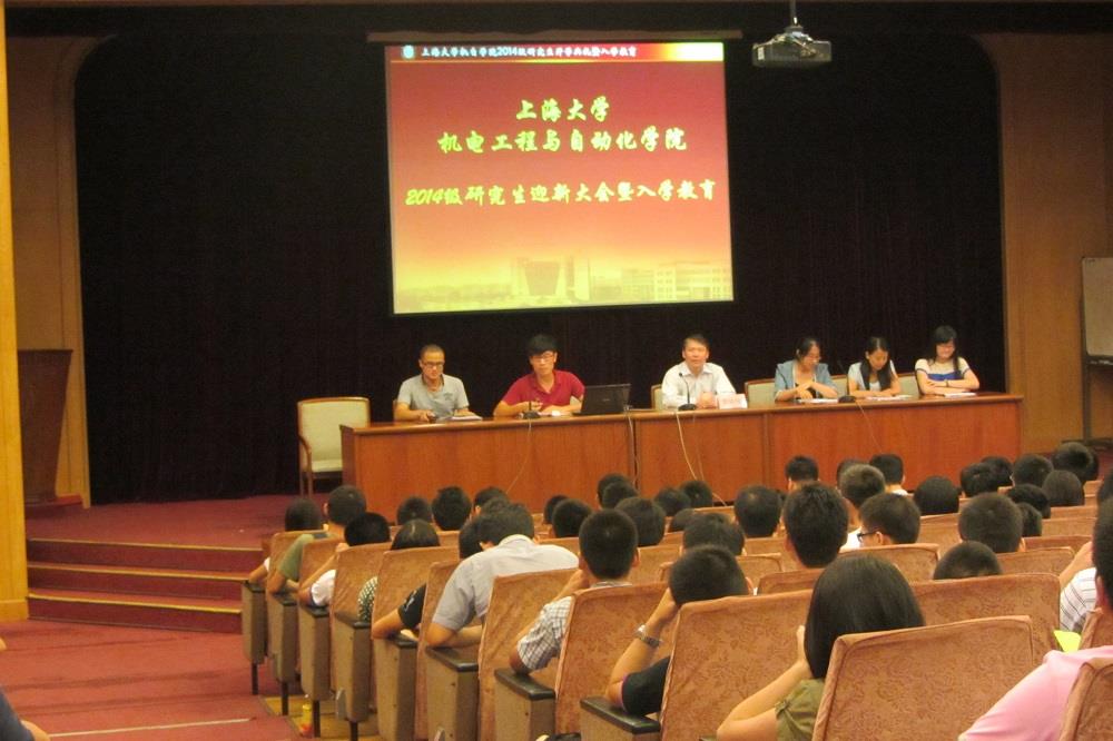 丹桂飘香,桃李芬芳,9月1日晚六点半,机自学院2014级研究生迎新大会暨入学教育于延长校区三教五楼报告厅隆重举行。机自学院院长费敏锐教授、研究生专职委员王智渊老师、研究生教学秘书谢姚老师受邀出席本次大会,与会的还包括研究生党总支副书记刘飞、研究生会主席张润忤、研究生党团研主要负责人以及新入学的硕士和博士等四百多人。大会由研究生党总支副书记刘飞主持。