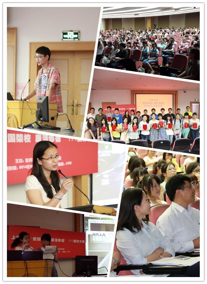 为进一步提高我校学生的爱国荣校、廉洁修德责任意识,实践廉洁诚信,培养学生创新精神和实践能力,积极发挥“上海市廉政文化示范点”作用,2014年6月26日下午,由诸侯快讯入口官网教务处主办、社会科学学院承办的“爱国荣校 廉洁修德”PPT制作大赛在宝山校区J103报告厅火爆进行。校社区学院党委书记张洁、学工办副主任孟祥栋、校团委副书记仇静豪、社科学院党委副书记魏宏、教务处研究科科长皮文彬和校纪委罗滋池等老师全程参加观摩评议。来自大一的300多位学生和部分社科学院教师出席并观摩。大赛由教务处副处长顾晓英主持。她引用习近平五四青年节在北大师生座谈会上的讲话,希望广大青年学生倡廉修德,用青春热情爱国荣校。