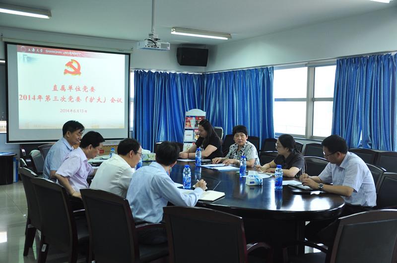 6月13日上午,直属单位党委在校本部D楼直属单位教工之家召开2014年第三次党委(扩大)会议,讨论近期工作,传达相关文件精神。会议由直属单位党委书记陆翠兰主持,直属单位党委委员及所属单位负责同志参加了会议。