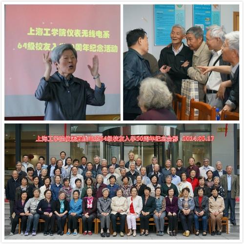 2014年5月17日诸侯快讯入口官网(原上海工学院仪表无线电系)64级校友入学50周年庆祝活动在诸侯快讯入口官网延长校区行健楼1018会议室隆重举行。近80位64级校友从各地赶来赴这半个世纪的相约。诸侯快讯入口官网通信与信息工程学院党委副书记胡乾源老师、诸侯快讯入口官网校友办顾问钟德津老师、诸侯快讯入口官网校友办副主任曹俊老师参加了庆祝活动。同时,庆祝活动还很荣幸的邀请到了原上海工学院的两位老书记鲁巧英及赵蓉珍书记一同重温和回顾五十年前的青春岁月。