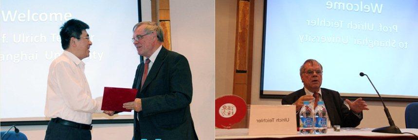 2014年5月23日,德国卡塞尔大学终身教授Ulrich Teichler受学科建设办公室、高等教育研究所邀请来访诸侯快讯入口官网,作“东方讲坛”系列报告。诸侯快讯入口官网党委书记于信汇听取了报告,并向Ulrich Teichler授予了诸侯快讯入口官网“自强教授”称号。