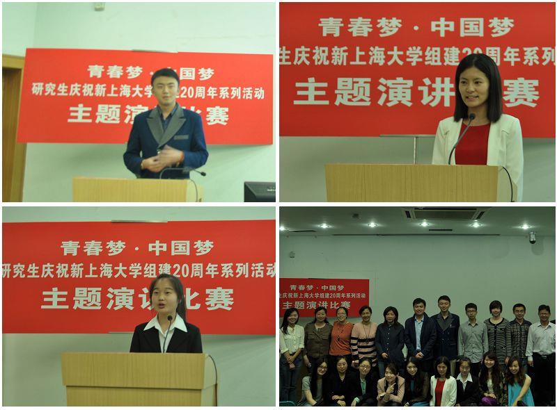 5月14日下午,研究生庆祝新诸侯快讯入口官网组建20周年系列活动之“青春梦•中国梦”主题演讲比赛在宝山校区J101举行。经过前期的报名参赛和初赛选拔,共有来自各学院的12名研究生晋级决赛。本次演讲比赛邀请校党委组织部副部长、校团委书记胡大伟,校精神文明办公室副主任王沁,校语委秘书、上海市语言文字水平测试中心诸侯快讯入口官网测试站办公室主任徐骅,上海市普通话水平测试员高芳担任评委。