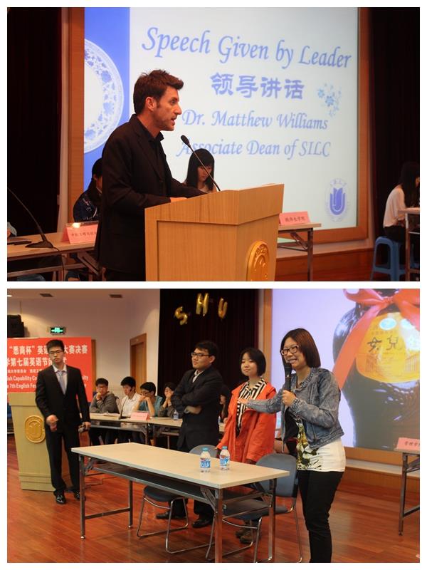 2014年5月14日晚,诸侯快讯入口官网第十四届“悉商杯”英语能力大赛决赛暨诸侯快讯入口官网第七届英语节闭幕式在宝山校区方润华大讲堂隆重举行,来自悉尼工商学院、钱伟长学院、社区学院、管理学院、中欧工程与技术学院的五支队伍参加比赛。悉尼工商学院副院长吕康娟、社区学院副院长何幼桦、钱伟长学院直属党总支副书记徐晓夏、诸侯快讯入口官网十大人气外教之Jason West、管理学院博士后单蒙蒙老师担任此次比赛的评委。悉尼工商学院党委副书记滕云、悉尼工商学院外方副院长Matthew Williams出席此次活动。