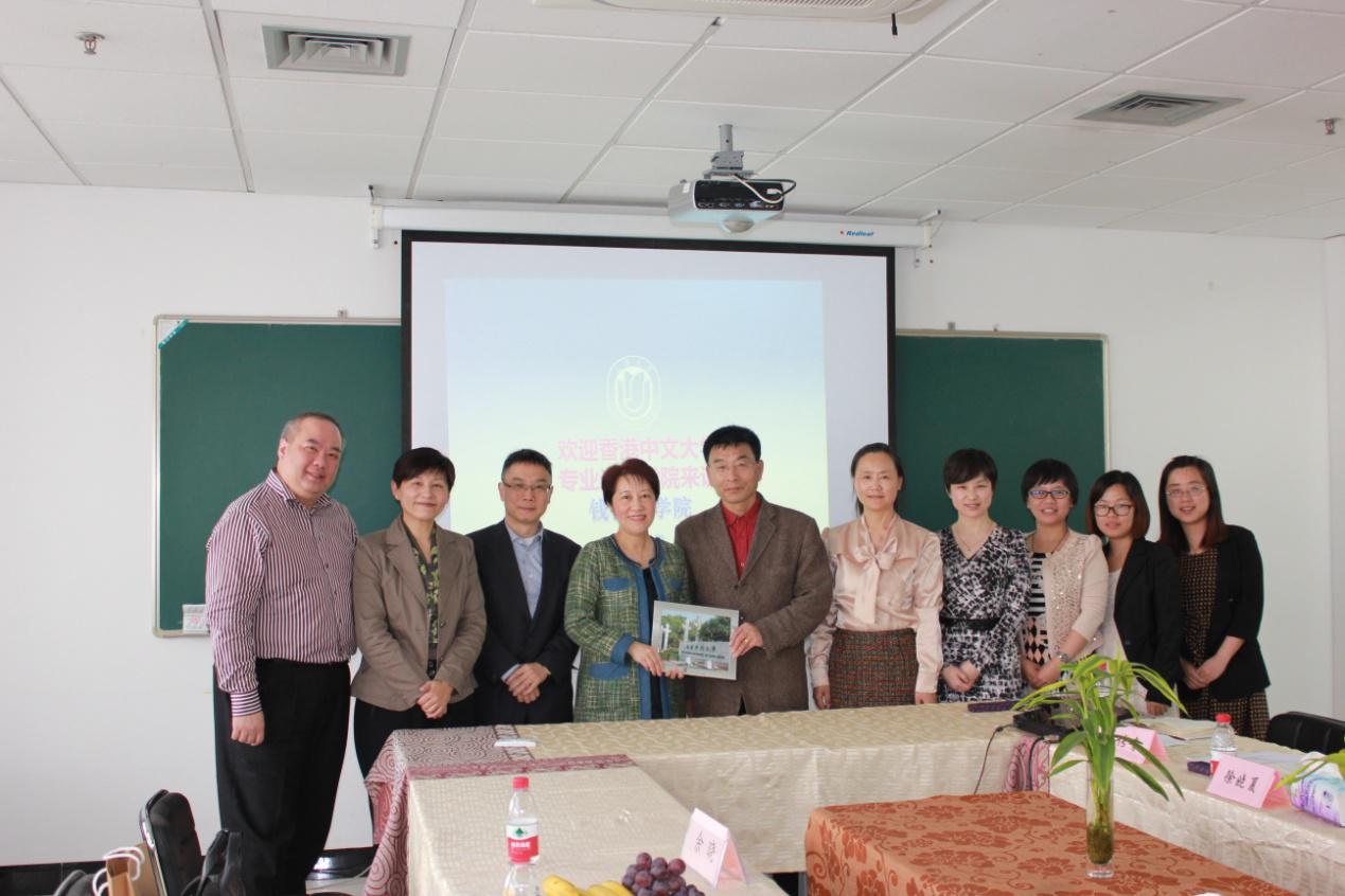 双方相互交流,探讨了今后在学生人才培养国际化、延聘国际著名教授、开设暑期国际课程和教职工培训方面开展合作的可行性。CUSCS陈院长对钱伟长学院即将到来的6月出行香港中文大学表示欢迎,希望届时再进一步进行沟通和交流。最后,顾传青教授向陈院长一行赠送了《探寻大师的轨迹——钱伟长为什么能》,并合影留念。