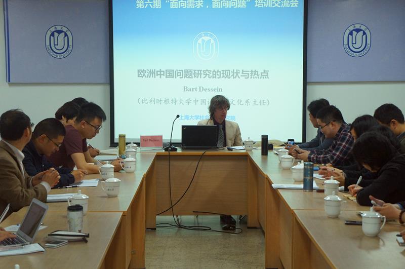 2014年4月17日上午,由我校社会发展研究院主办的“面向需求,面向问题”第六期文科研究中心交流培训会在校本部行政楼501会议室如期举行。此次培训会针对“欧洲中国问题研究的现状与热点”,特邀比利时根特大学中国语言与文化系主任Bart Dessein教授来校,与学校各文科中心代表和社会科学领域的专家学者进行深入交流。培训会由社会发展研究院张恒龙院长主持,逾40名文科学院科研负责人和相关学科教师出席交流会。