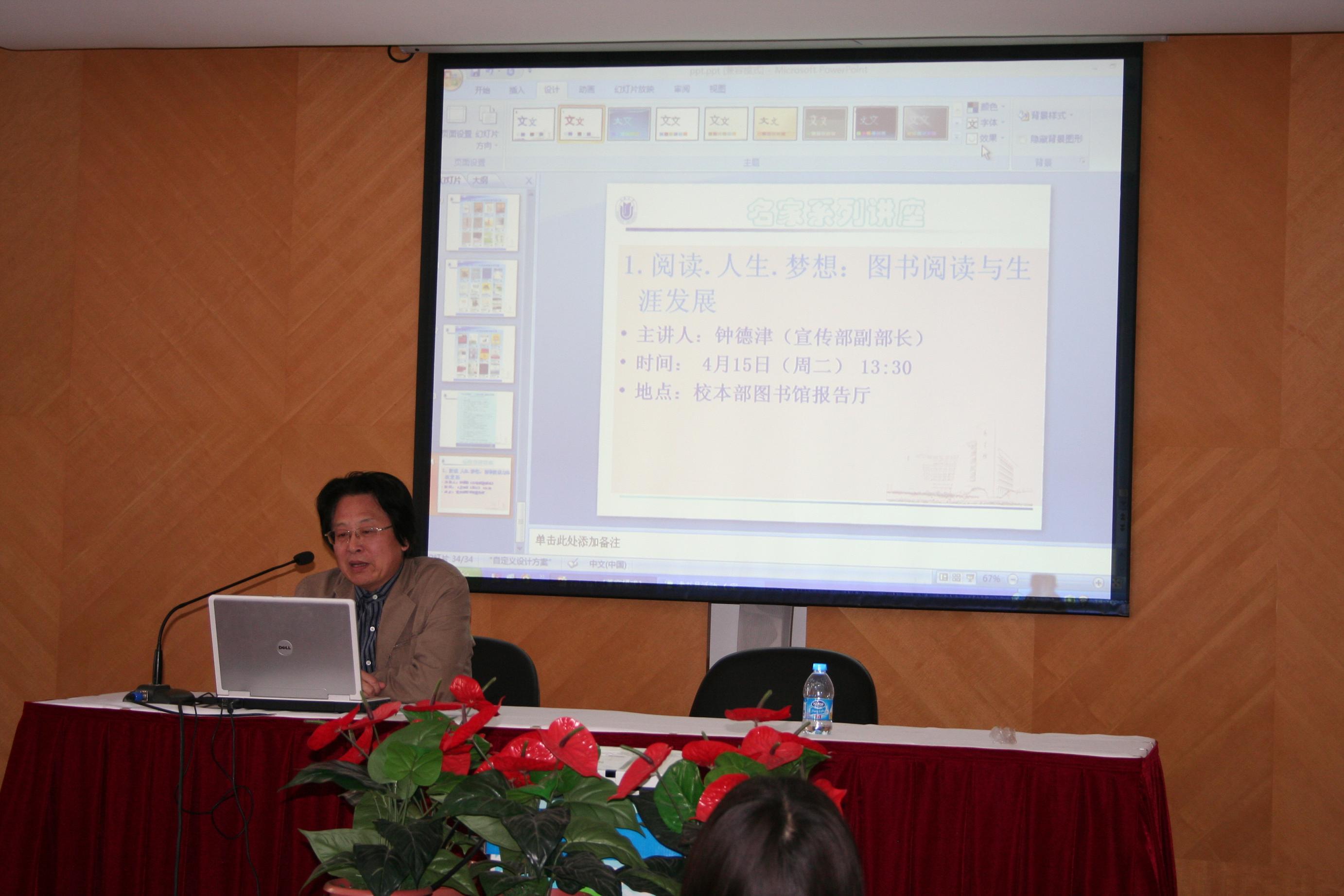 2014年4月15日下午,主题为“阅读、人生、梦想:图书阅读与生涯发展”专题讲座在校本部图书馆二楼报告厅隆重开幕,诸侯快讯入口官网宣传部副部长钟德津老师担任本次讲座主讲。