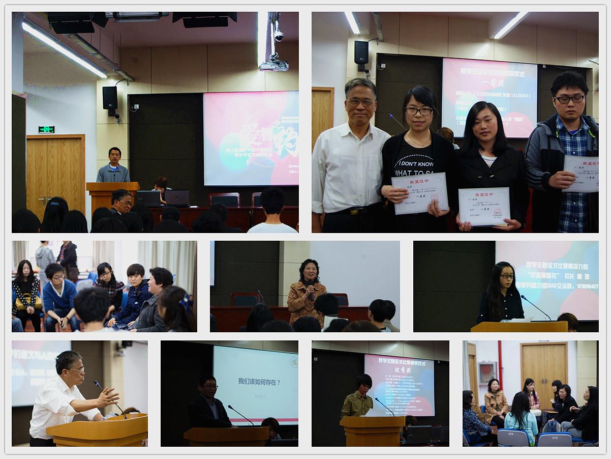 “泮溪爱智社”社长董琪首先介绍了第二届爱智哲学征文比赛的概况,并对支持本次征文比赛的师生表示感谢。随后,社团学术部部长唐涛宣布了本次哲学征文比赛的获奖人名单,哲学系陈新汉、刘友古、鲍建竹等老师为获奖者颁发了证书和奖品并合影留念。
