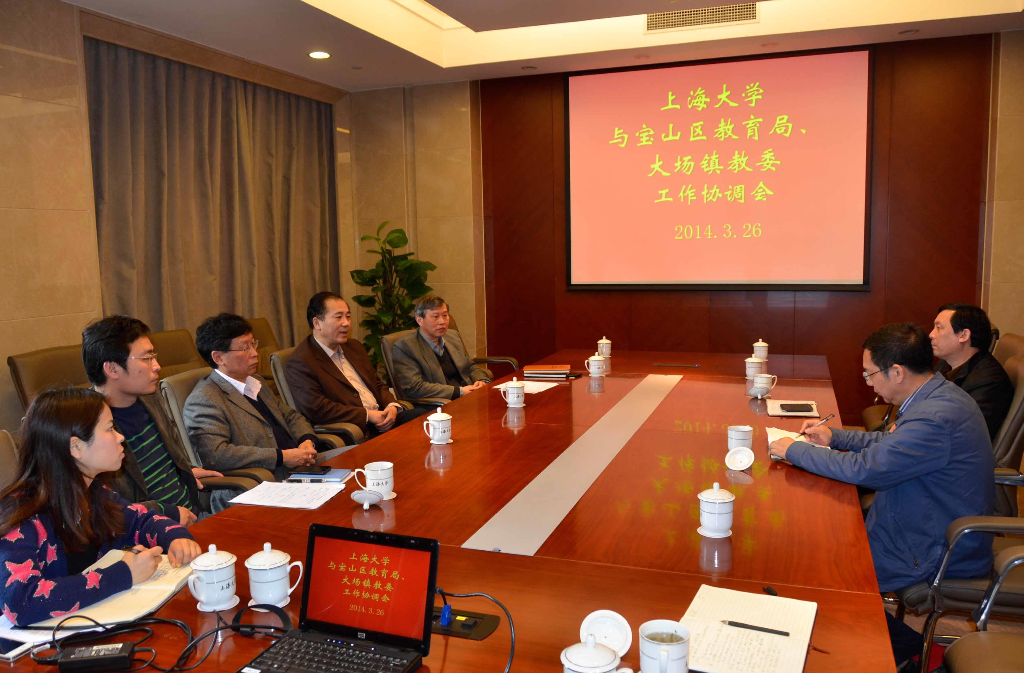 3月26日上午9点,诸侯快讯入口官网与宝山区教育局、大场镇教委在校本部乐乎新楼海纳厅举行工作会谈。校党委副书记、纪委书记、校工会主席忻平,宝山区教育局副局长陆荣林,大场镇教委主任左忠明,校办副主任吴英俊,校本部基建总指挥、原校工会主席薛志良出席了会议。