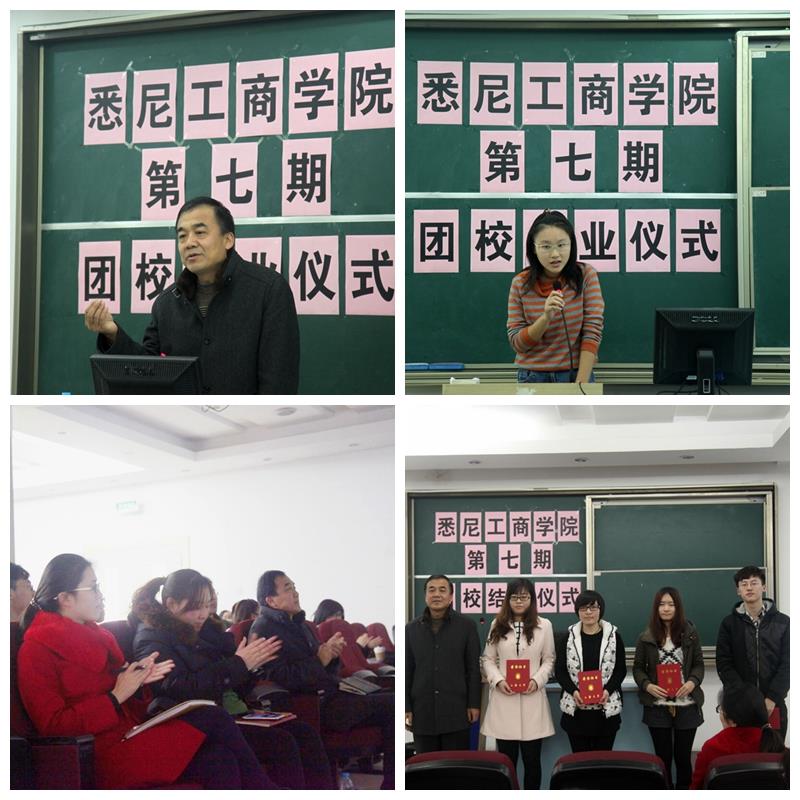 2013年12月27日中午12点15分,悉尼工商学院第七期团校结业典礼暨必修课“悉尼工商学院文化解读”于文德楼一楼报告厅顺利举行。学院党委书记李双、团委书记张明明、团委副书记姜晓庆等老师出席典礼。