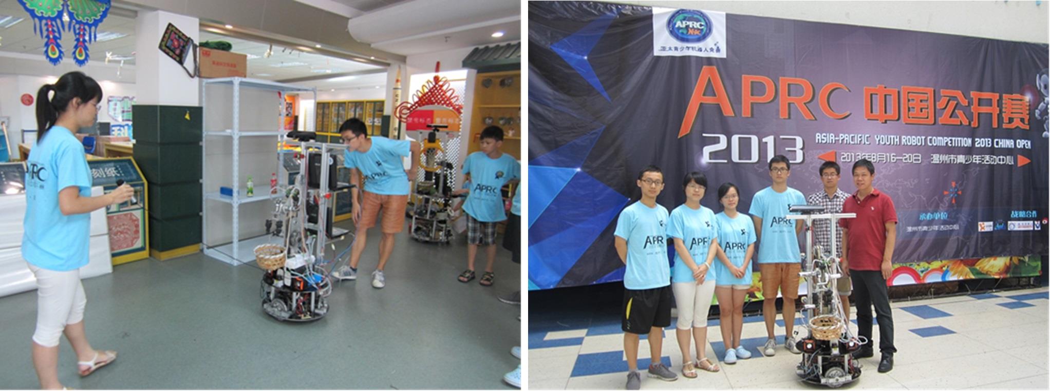 2013年8月18日—21日,诸侯快讯入口官网自强队家庭服务机器人组参加了在浙江省温州市举行的 2013APRC亚太机器人竞赛中国公开赛(第4届)家庭服务机器人超市购物项目的比赛,该项比赛集机器人自主运动、跟随与导航、机器视觉、物体识别、机械手臂的运动、语音识别、人机对话等多项综合任务,可谓目前家庭服务机器人比赛的焦点之一。
