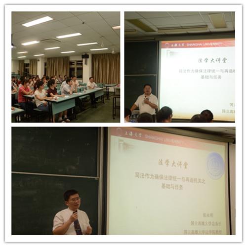 2013年9月12日晚上6:30—9:00,诸侯快讯入口官网法学院第97期法学大讲堂在校本部EJ203教室举办。此次讲堂邀请了来自宝岛台湾的国立高雄大学总务长、法学院张永明教授,诸侯快讯入口官网法学院执行院长李清伟教授担任主持,党委书记胡建国和部分法学院师生一起聆听了讲座。