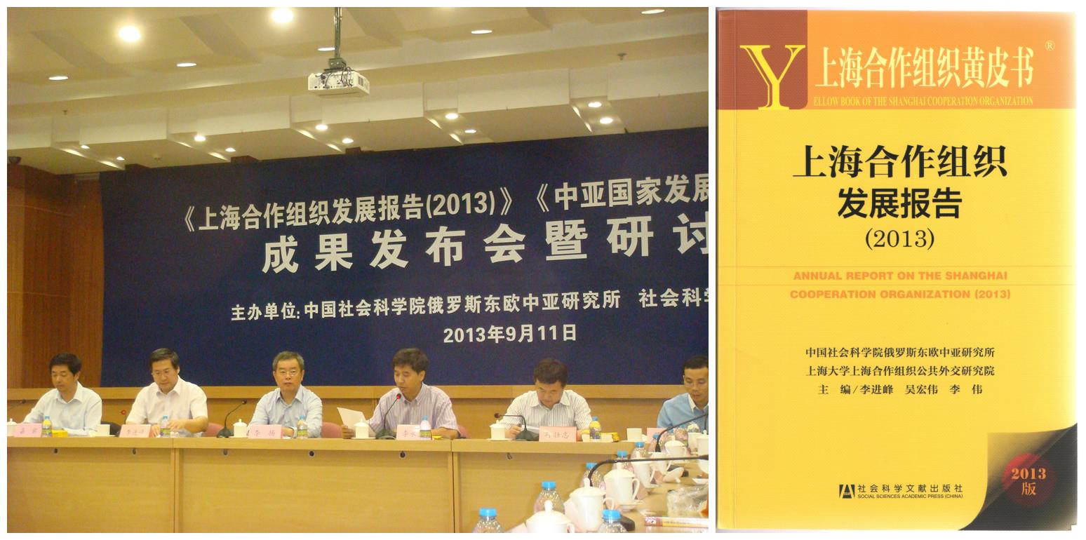 9月11日上午9:00在中国社会科学院会议厅举行《上海合作组织发展报告(2013)》和《中亚国家发展报告(2013年)》成果发布会暨研讨会。校长助理、上合组织公共外交研究院院长李伟、社会发展研究院院长张恒龙、公共外交研究院副院长张丹华参加成果发布及宣传活动。中国社会科学院副院长李扬出席发布会并致辞,李伟应邀在主席台就座并发表讲话,会议由俄罗斯东欧中亚研究所所长李永全主持。来自中国社会科学院俄罗斯东欧中亚研究所、国内中亚问题研究机构的专家学者等80余人、中亚国家驻华代表出席发布会,中央电视台、人民日报、俄语频道等十余家媒体全程报道。