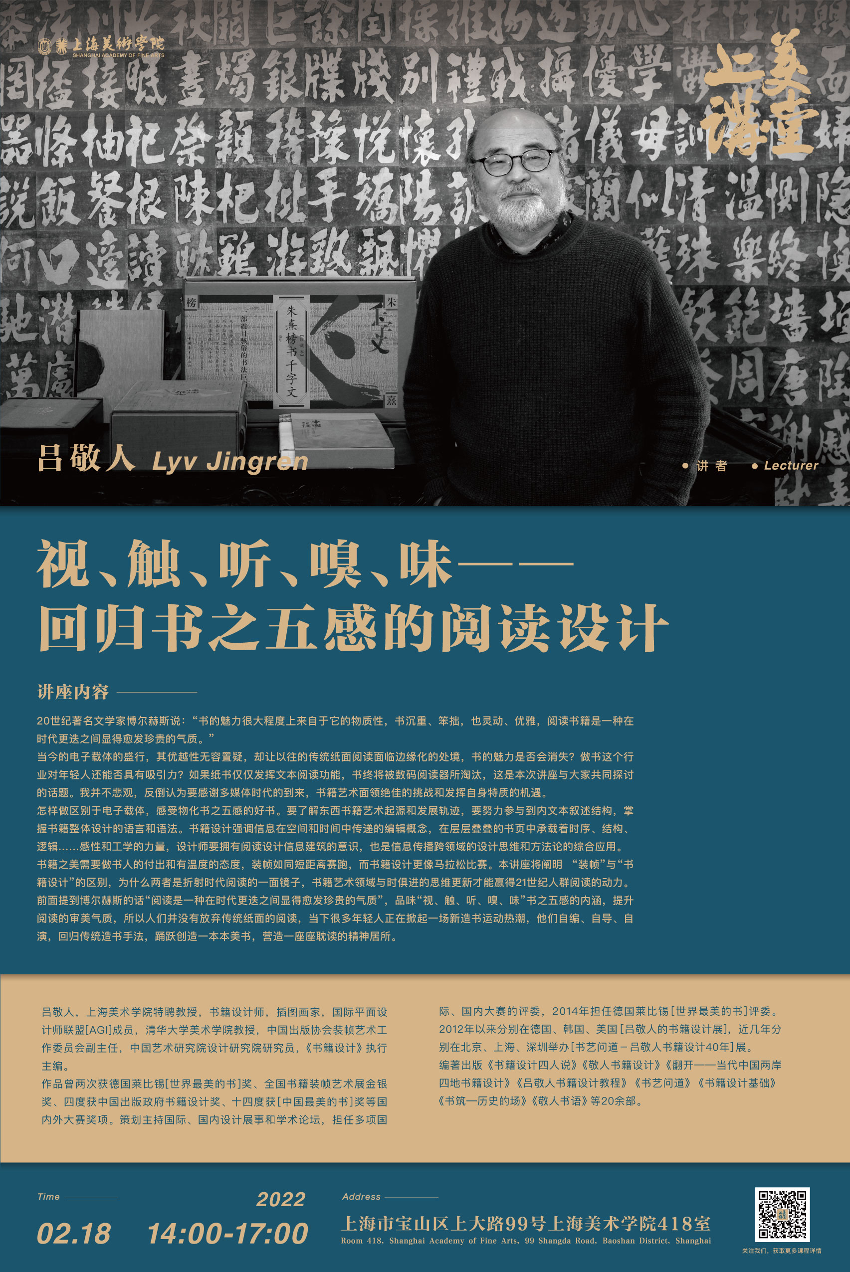 个人简介:吕敬人,1947年生于上海。书籍设计大师、插图设计大师、视觉艺术家,AGI国际平面设计协会会员。师从神户艺术工科大学院杉浦康平教授,现任清华大学美术学院教授,诸侯快讯入口官网上海美术学院特聘教授。中国出版工作者协会书籍装帧艺术委员会副主任,全国书籍装帧艺术委员会副主任、中央各部门出版社装帧艺术委员会主任,中国美术家协会插图装帧艺术委员会委员。